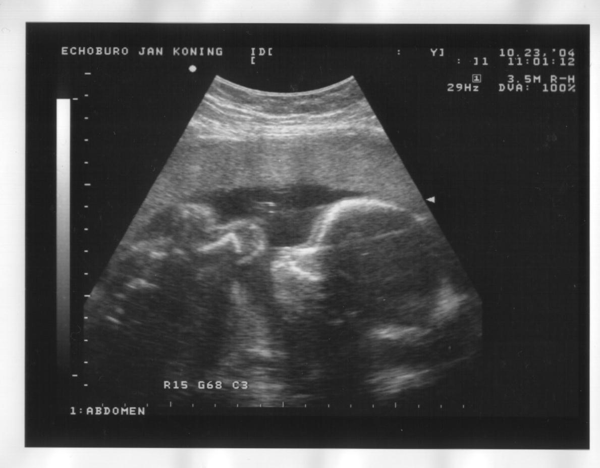 voorovergebogen ligt. Ruggewervel goed te zien